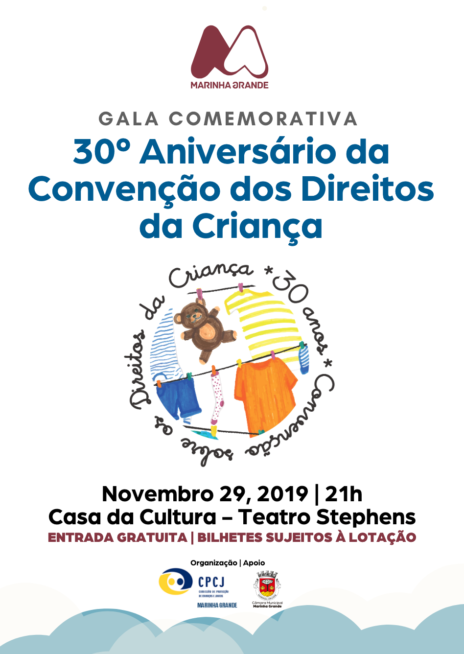 A Câmara Municipal da Marinha Grande e a Comissão de Proteção de Crianças e Jovens organizam a Gala Comemorativa do 30º Aniversário da Convenção dos Direitos da Criança, no dia 29 de novembro (sexta-feira), pelas 21h00.