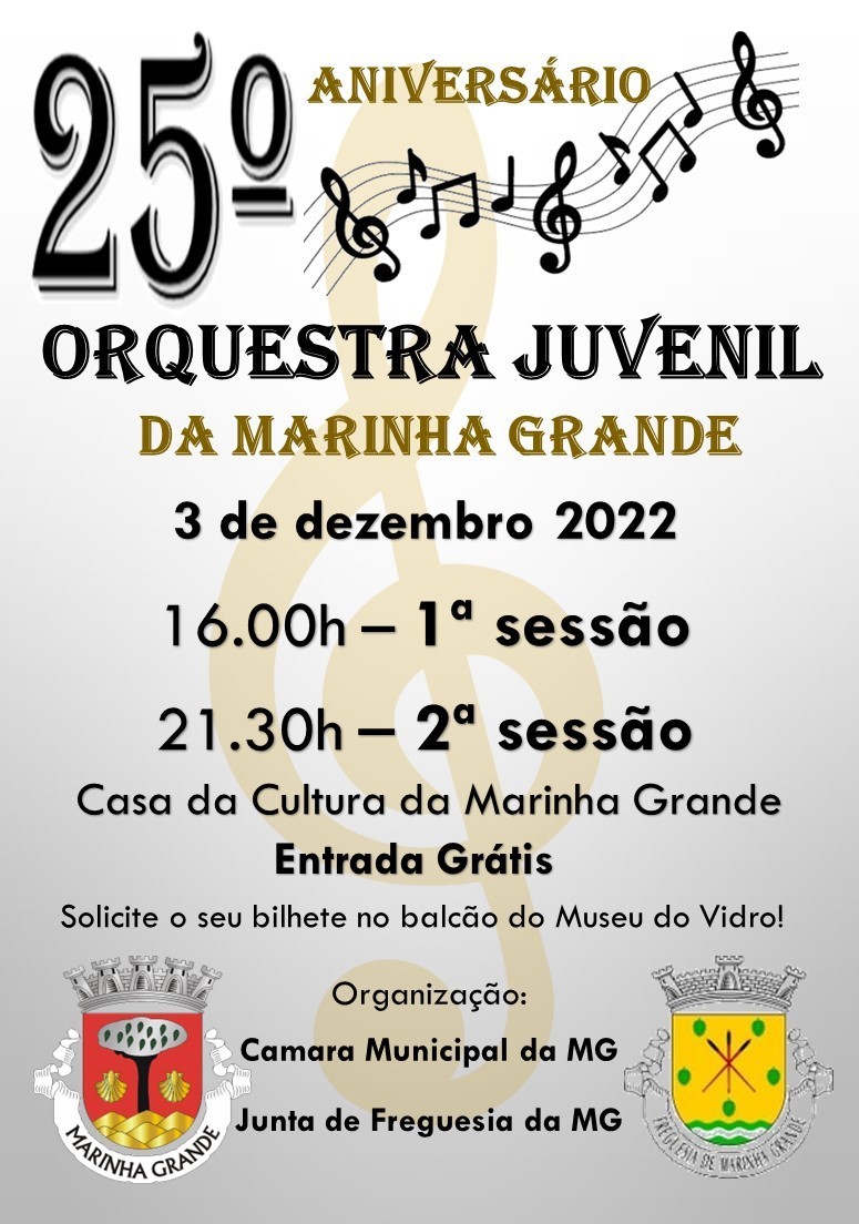 A Orquestra Juvenil da Marinha Grande celebra o seu 25º aniversário a 3 de dezembro de 2022, na Casa da Cultura da Marinha Grande.