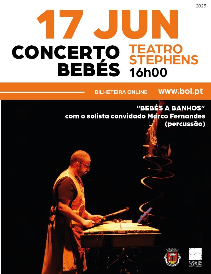 No dia 17 de junho (sábado), pelas 16h00, o Teatro Stephens recebe o Concerto para Bebés “BEBÉS A BANHOS”, com o solista convidado Marco Fernandes, na percussão.