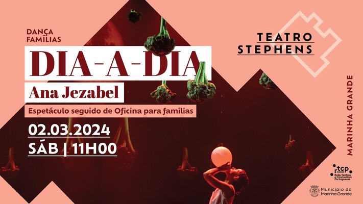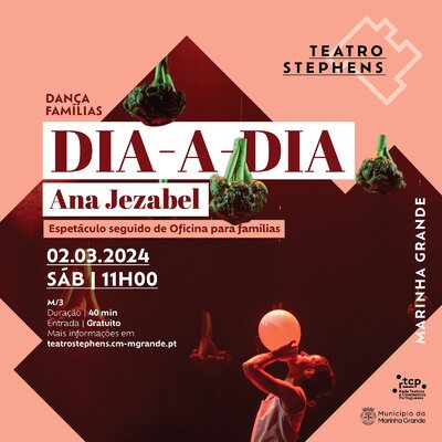 O Teatro Stephens, na Marinha Grande, recebe o espetáculo de dança “Dia-a-Dia”, da coreógrafa Ana Jezabel, seguido de uma oficina para famílias, no dia 2 de março (sábado), pelas 11h00, cuja entrada é gratuita.