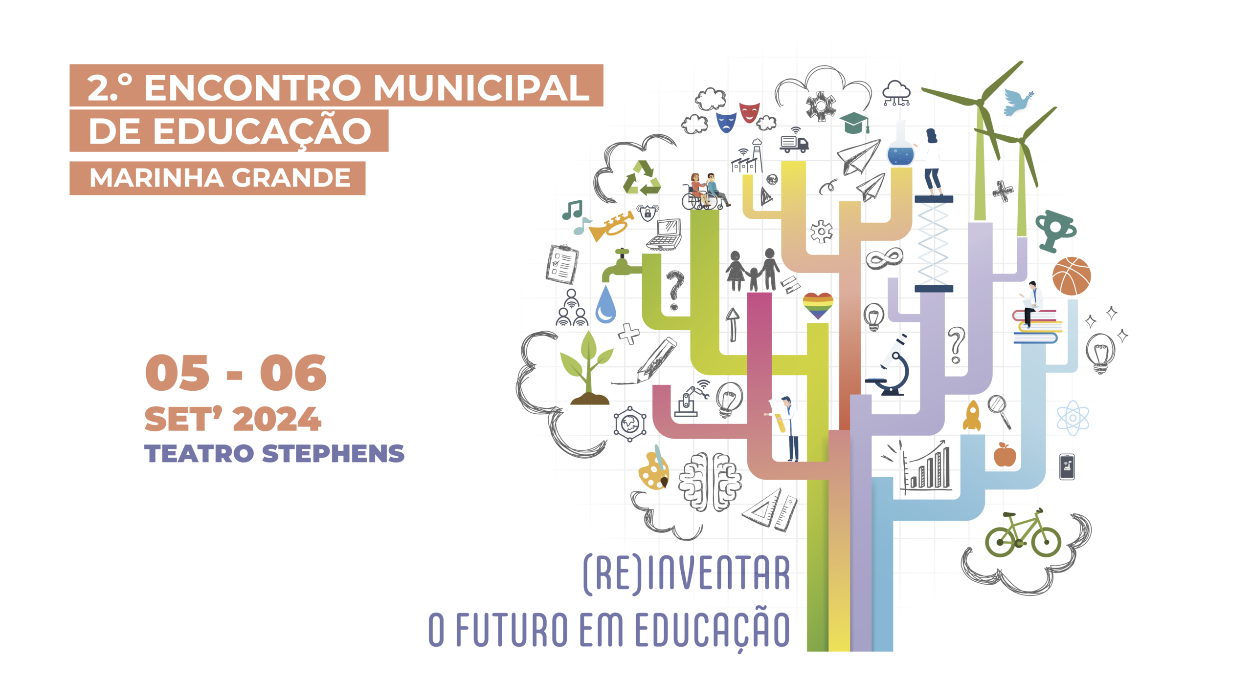 O Município da Marinha Grande realiza o “2º Encontro Municipal de Educação - (Re)Inventar o futuro em Educação”, nos dias 5 e 6 de setembro de 2024, no Teatro Stephens, reunindo oradores conceituados a nível nacional para debater temas transversais à educação, ação social e às famílias.