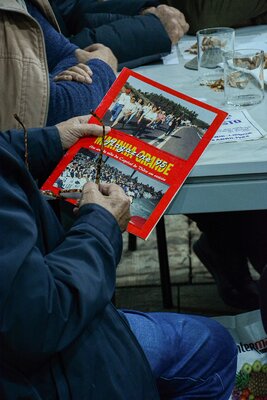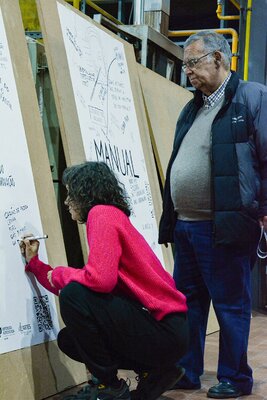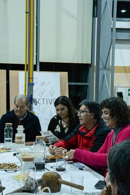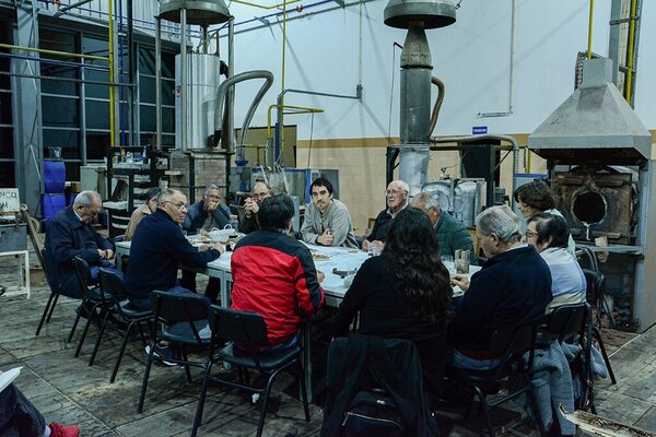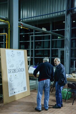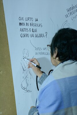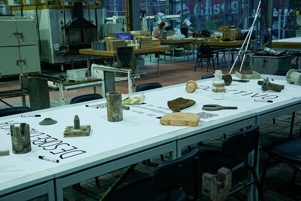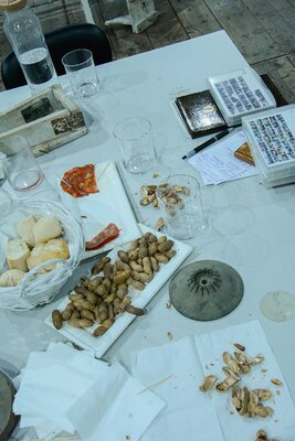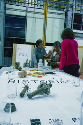 Ali se desenvolveram conversas à volta de uma grande mesa preenchida por comida e por objectos e ferramentas encontrados em fábricas abandonadas e que estão associados ao corpo e aos gestos desse fazer.