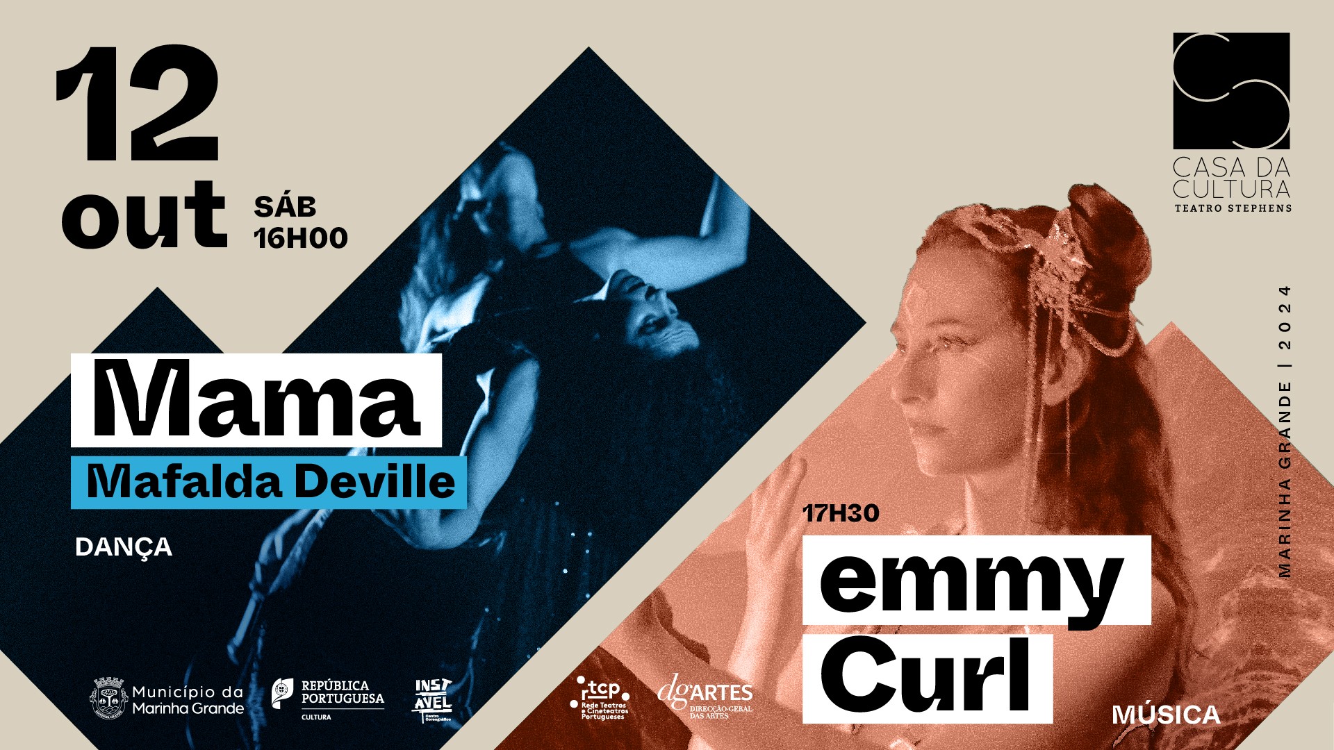 O Teatro Stephens, na Marinha Grande, recebe o espetáculo de dança de Mafalda Deville e o concerto de Emmy Curl, no dia 12 de outubro (sábado), às 16h00 e 17h30, respetivamente.