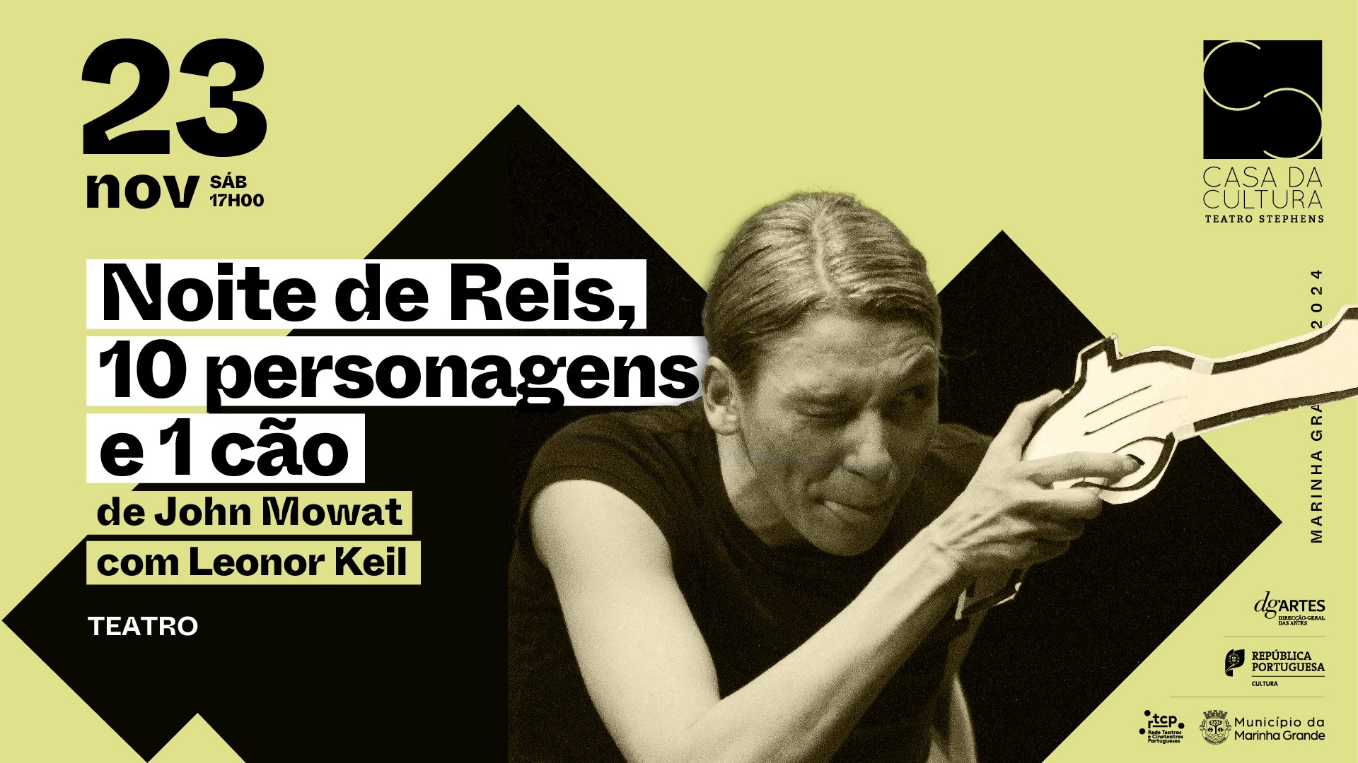 No dia 23 de novembro de 2024, pelas 17h00, o Teatro Stephens, na Marinha Grande, exibe a peça "Noite de Reis, 10 personagens e 1 cão”, de Jonh Mowat e Leonor Keil.