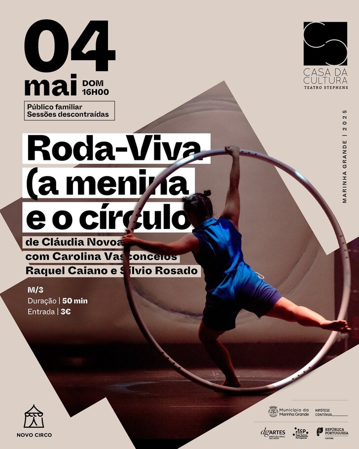 O Teatro Stephens, na Marinha Grande, recebe no próximo dia 4 de maio, às 16h00, o espetáculo “Roda-Viva (a Menina e o Círculo)”, uma criação multidisciplinar que une circo, dança, desenho e música numa viagem sensorial pelo universo dos sonhos e da imaginação.