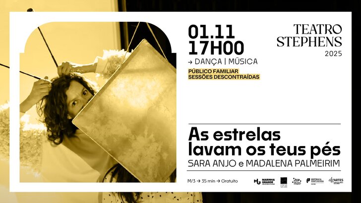 Esta obra de Sara Anjo (Bailarina) e Madalena Palmeirim (Música) une as duas disciplinas artísticas, num espetáculo dedicado ao público familiar, com sessão descontraída. As Estrelas Lavam Os Teus Pés é um momento onde a beleza e uma banda sonora onírica se juntam a imagens, aos corpos das intérpretes em movimento, numa experiência que criará momentos de contemplação, necessários nas vidas agitadas das famílias.